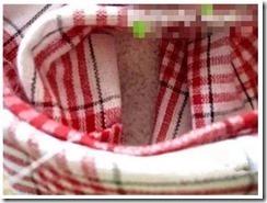 我坐在床上,把腿伸直,把袋子放到膝蓋上,立刻熱乎乎的,好舒服呀!